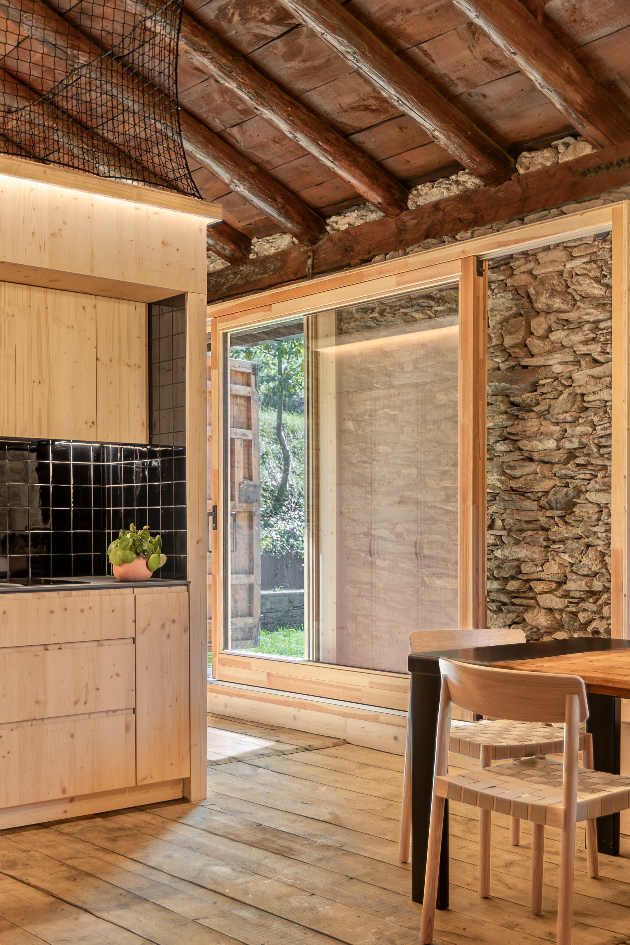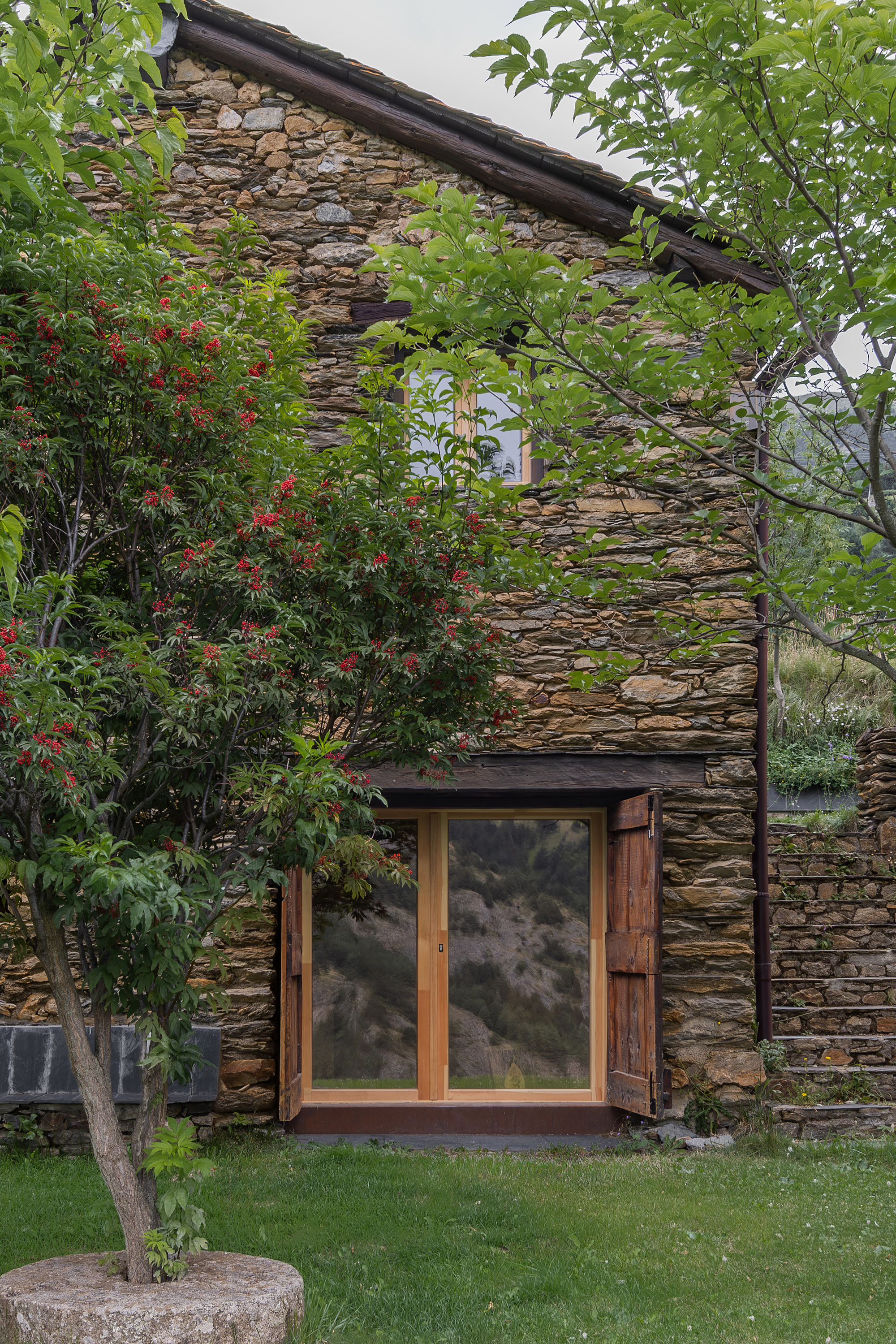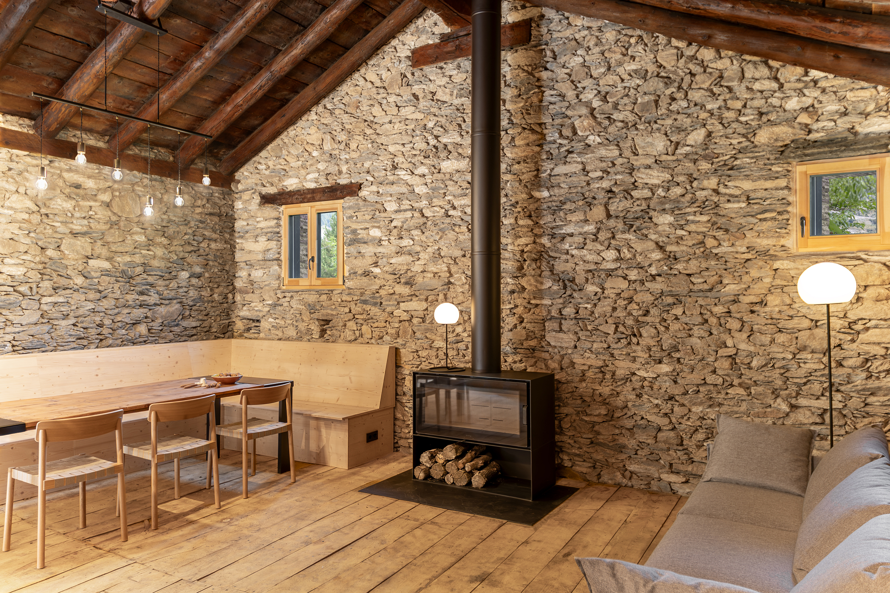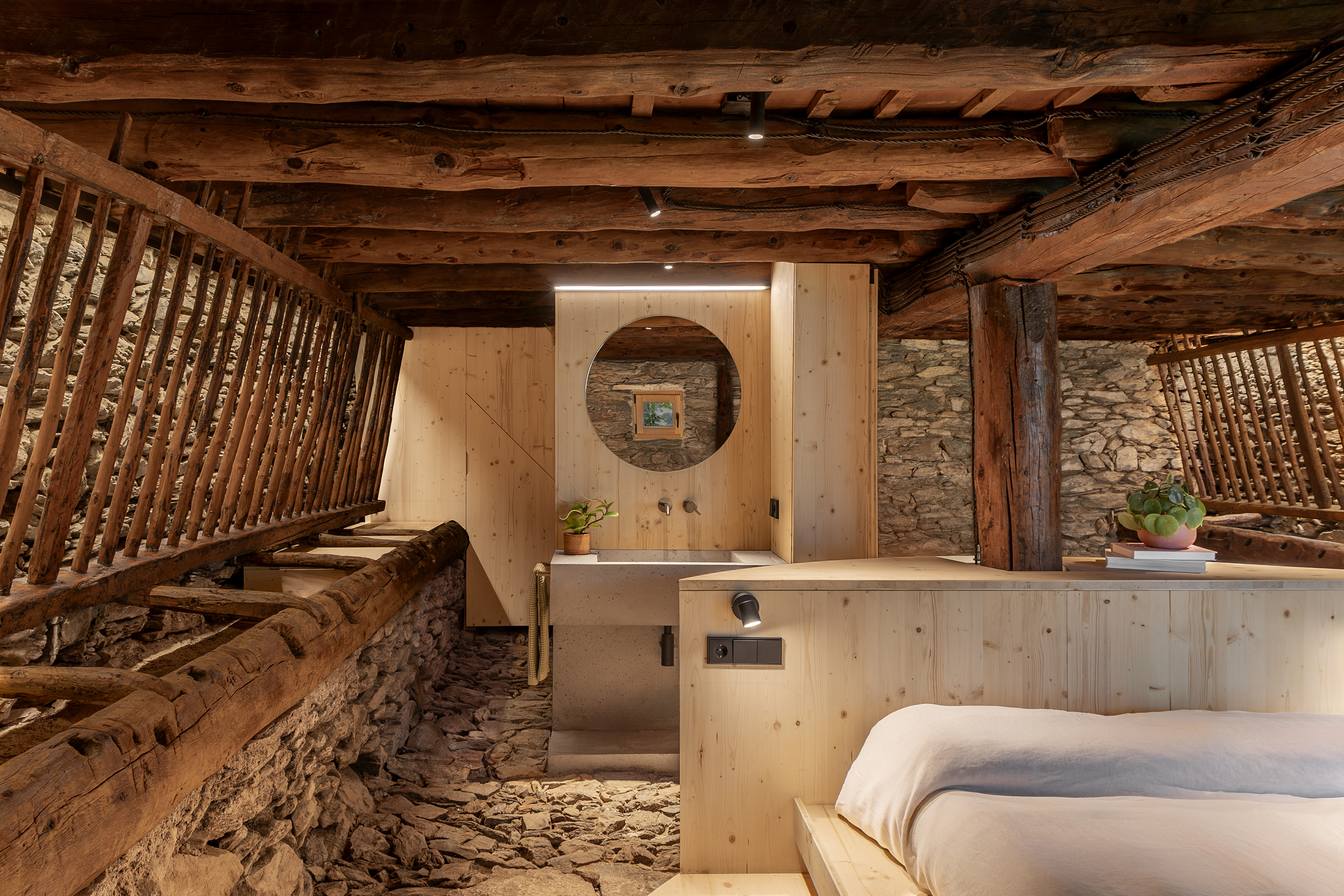 La Borda el Cultià, situada al Pirineu andorrà, ha estat rehabilitada amb una intervenció mínima i respectuosa que manté intacta la major part de l’edifici original. El projecte concentra els nous usos en una caixa de fusta inserida dins el volum existent, que acull banys, cuina i espais tècnics. Aquesta solució, de baix impacte ambiental i pràcticament reversible, permet ordenar els espais sense alterar l’estructura històrica. Els espais perimetrals es conserven oberts i flexibles, de manera que poden funcionar com a habitacions, sales o menjadors, preservant l’essència agroramadera i patrimonial de la borda.
