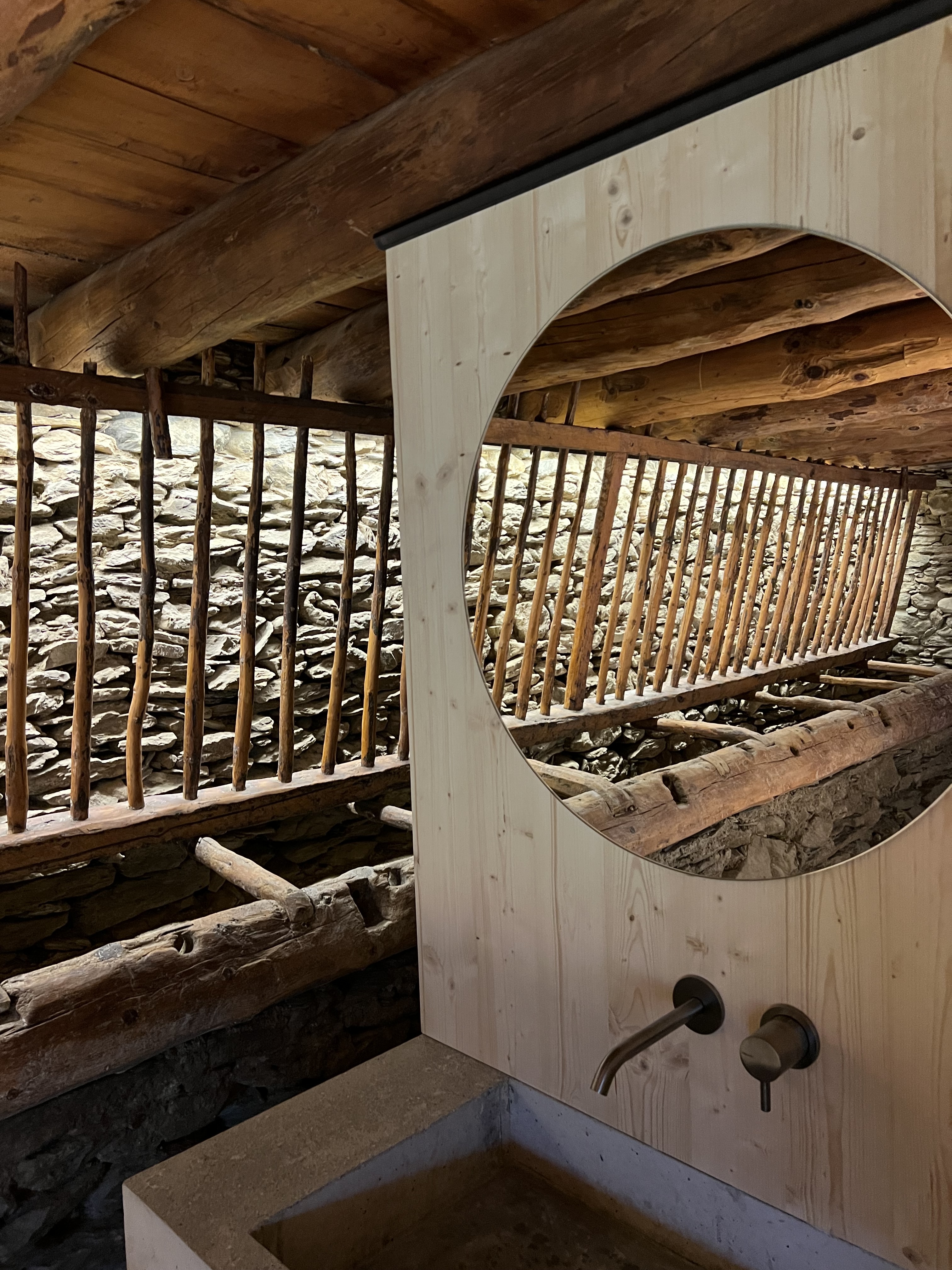 La caixa de fusta, un material de baix impacte mediambiental, s’ha introduït respectant l’estructura original i sense tocar la coberta de manera que l’única afectació real sobre el patrimoni ha estat la seva petjada al paviment de la planta baixa. Per tant, es tracta d’una actuació reversible pràcticament en la seva totalitat.