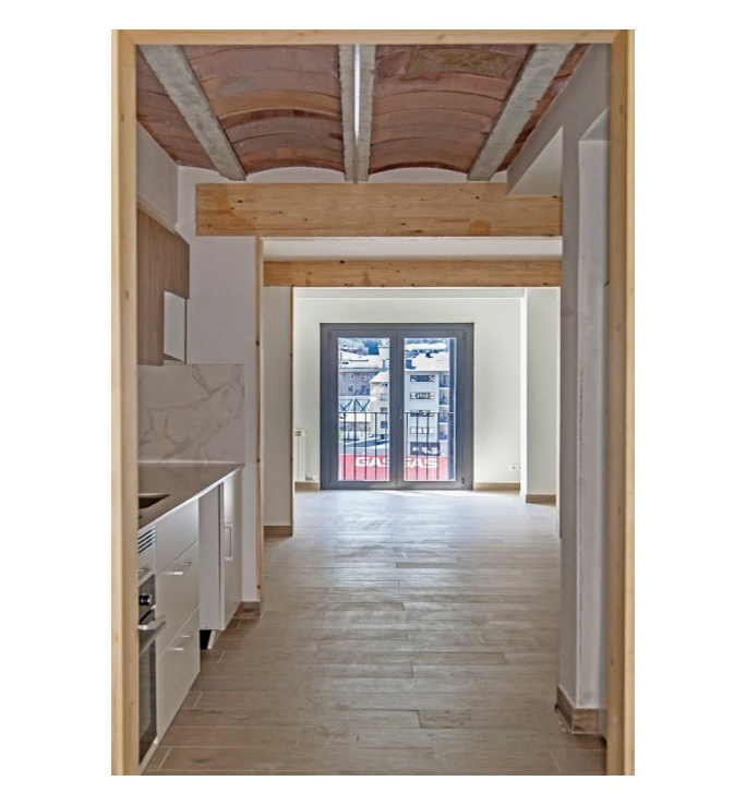 Els pisos passants han volgut prioritzar aquesta idea de creuar els espais de sala a sala travessant els murs de càrrega, generant una sensació nova i poc vista en els habitatges a Andorra.
