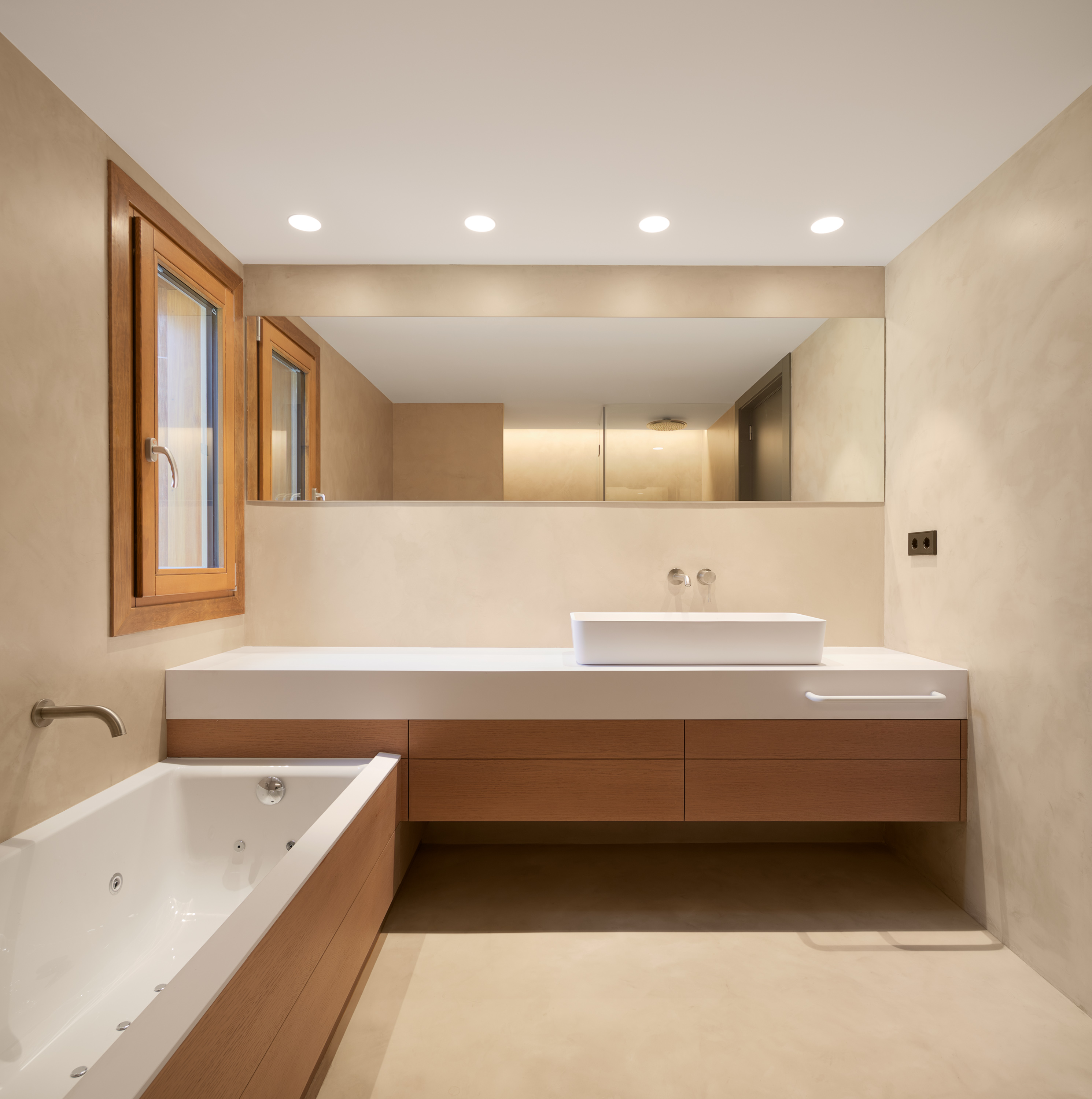 Hem rehabilitat energèticament la construcció dels anys 60 per tal de millorar-ne el confort i reduir el consum d’energia. Per reduir la demanda energètica hem incrementat el gruix d’aïllament tant en façana com en coberta i hem col·locat unes noves finestres de fusta amb triple-vidre. Pel que fa als sistemes actius, hem substituït l’antiga caldera de gasolil per una aerotèrmia d’alta eficiència que genera aigua calenta a baixa temperatura per al terra radiant.